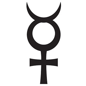 You may already know mercury as three different things: the chemical element, the planet, and the messenger god. In its chemical form, mercury is also known as quicksilver. It's the only metal that liquefies at standard room temperature and pressure. It's also very toxic so do be careful if you are ever handling this element. Mercury is also symbolic of moral judgment and imagination.