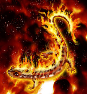 The process by which nature chooses is called natural selection. When changes to DNA are helpful, that change is more likely to be passed on. The brazier to my right contains fire salamanders, while the bowl to my left contains frost salamanders. Both species are amphibians. Their mundane amphibian cousins are notable because their skin must always be in contact with water. Similarly, these two magical varieties require fire and ice, respectively, and depriving them of either will hurt them.
