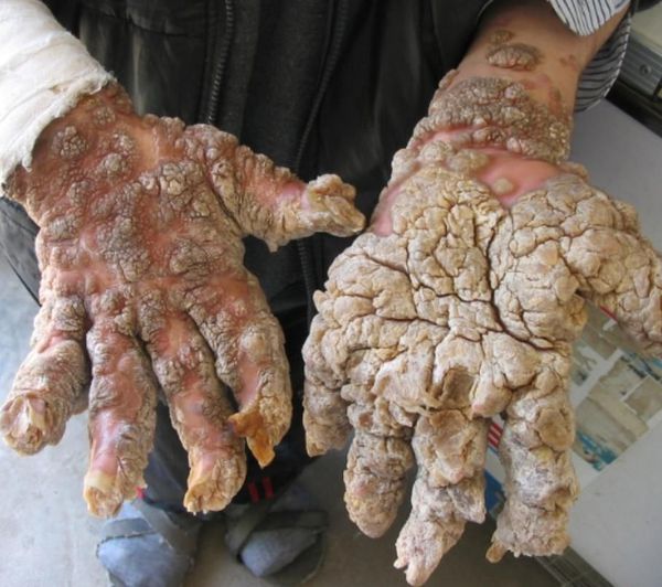 Now, many of you may have heard about a troll called the Troll of Nadroj, and may be confused as to why I haven’t covered it. The Troll of Nadroj is actually a troll with a genetic skin disorder. For a long time we believed that it was a different species of troll, but the discovery of the disease in humans led to the discovery of it in trolls. Epidermodysplasia verruciformis, or EV as I will be referring to it, is an incredibly rare recessive skin disorder. It is characterized in humans by wart-like growths that, when left unmanaged, can turn into severe growths. It is mostly known for the growths caused on the hands, but can cause growths all over the body. I am going to provide a link to an image, however, please note it can be considered graphic and please only look at your own discretion.