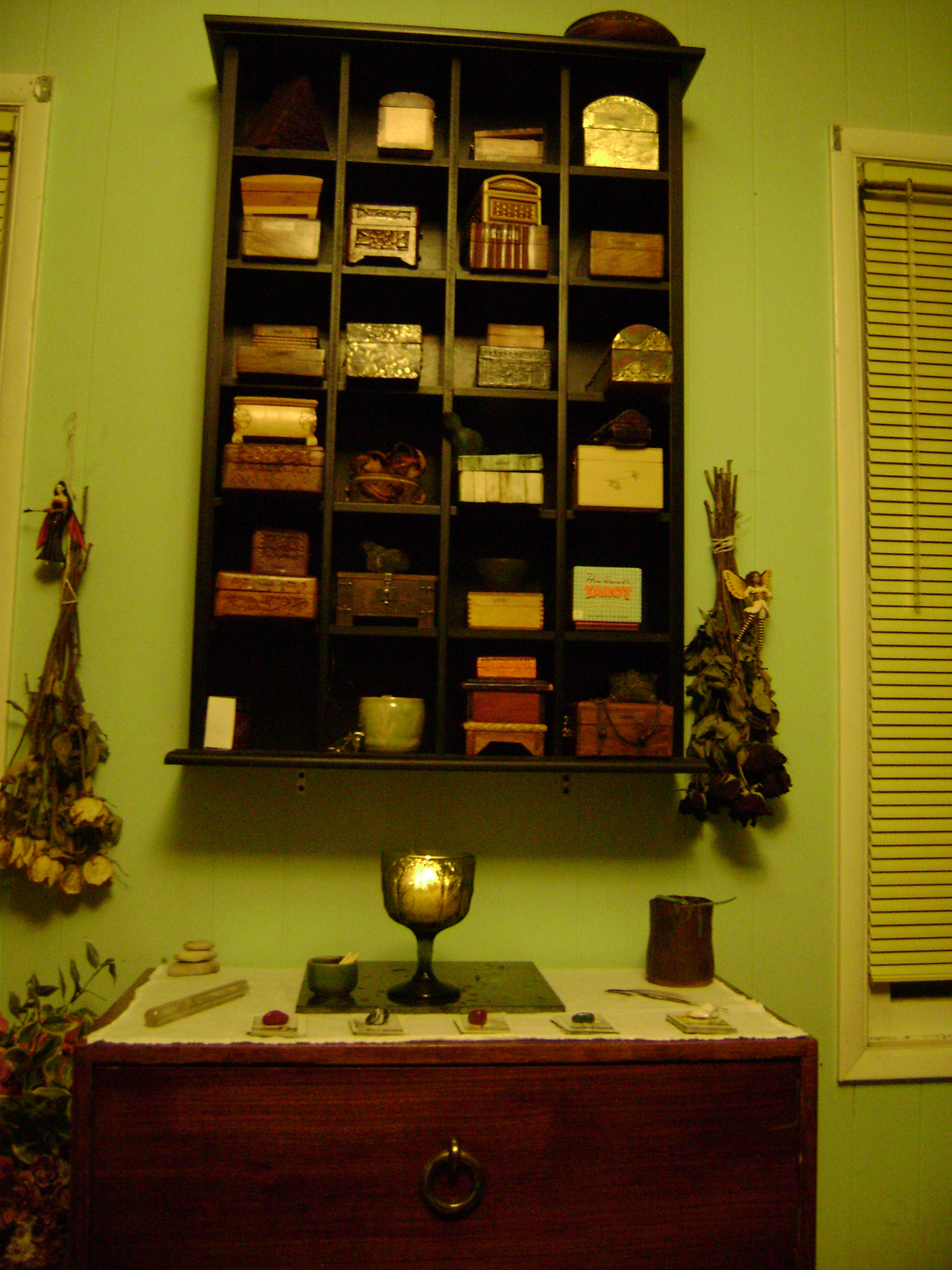 One option is keeping them in a wooden box, often one that has been magically imbued. The kind of wood is something to consider and not just pick at random, or base solely on aesthetic preference. Much like how a particular kind of wood is best suited for a witch or wizard’s wand, a box should be carefully considered as well. Of course, the boxes are not pseudo-sentient and able to “choose” you, like wands are. This leaves you with the responsibility of recognizing which wood best suits your needs. Some people find that their wand wood and the wood in their box are identical or related, but just as often there is little to no relation. But, as with all things, knowing yourself, doing your research, and simply trusting your intuition will get you far!