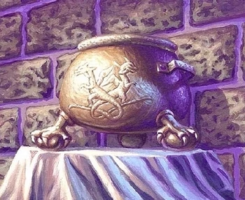 Brass has a higher melting point than pewter, at roughly 920 degrees Celsius. Even though it isn't suited for burning or reactive plants (two classes of plants we will talk about in more detail in Lesson Seven), it still gives a leg up in resistance to its pewter cousin. However, should any plant material get stuck to the cauldron and start burning, it will react with the metal and start emitting a green-blue fire and release zinc into the air, so if that happens, be sure to call a professor or an experienced adult over to deal with the fumes!