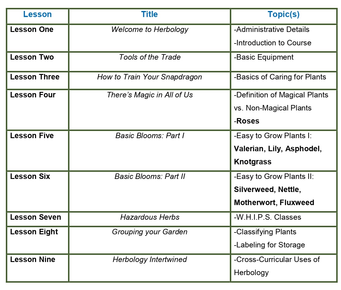 Finally, we can get to the good stuff -- though, I may be a bit biased -- herbology! Below is a peek at what we will be studying this year.
