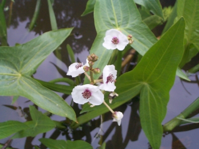The first plant to be covered today is arrowhead. Before we go any further, I should probably mention that there are multiple kinds of plants with the common name “arrowhead.” There is an arrowhead vine; an average, everyday land plant which is also called the arrowhead; and a number of different species of water plants that fall into the same family. For the purposes of this lesson, though, we will be talking about Sagittaria sagittifolia, which grows predominantly in Europe, Asia, and North America. This emersed plant gets its name from its distinctive pointed leaves, though the early leaves are still submerged and are more ribbon-like. The plant also bears little white flowers in clusters that appear during the summertime.