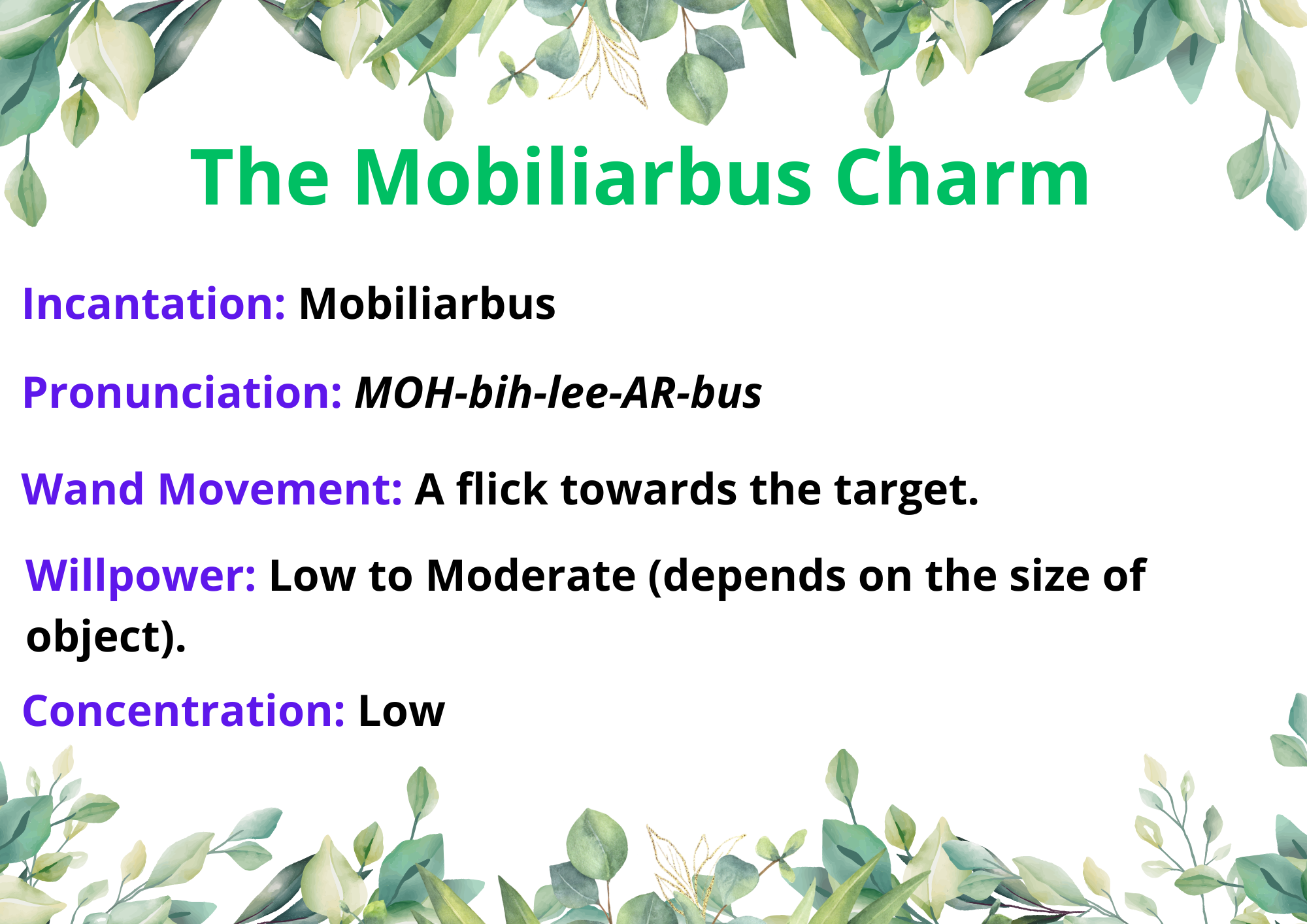 As mentioned, this charm is not just for repotting and not just for plants. It can be seen in use around Christmas, as the staff maneuvers the enormous pine trees around the castle and grounds. It can also be used to great effect on larger, wooden objects. Upon casting, a blue light will shoot towards the plant. With a simple flick of the wand, roots will detach from the soil in which they are planted and allow the caster to move the plant wherever desired. The spell’s complete details are as follows.
