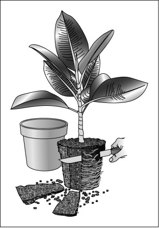 At this time, examine the roots. If they have become “pot bound,” or have grown to match the confines of the pot, you will need to break them up. You may do this by hand, gently ripping apart the root structure to loosen it up and discarding loose chunks, or you may make calculated cuts about ½ of an inch thick all the way around the outside of the roots. For cutting, a sharp knife and the Severing Charm work equally well. I know, it seems like this would hurt the plant, but it is absolutely necessary to promote growth and is not detrimental unless taken too far. If appropriate, you may save the roots you have removed for culinary, medicinal or potion use, or you may use them to attempt to grow another specimen of the same plant.