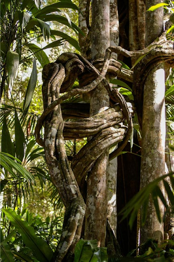 Though not something you’ll be able to grow in our greenhouses here, Ficus correpo is still a fun plant to talk about.1 Known by those native to Peru and Brazil as “Arbolente” (from “arbol,” meaning “tree,” and “serpiente,” meaning “snake”), this magical tree gets its Spanish, English, and Portuguese names from its serpent-like qualities. It will coil around another tree like a vine, though it has no semi-parasitic tendencies. It is unknown why this plant chooses to coil itself around other trees, as it most often flees from the sight and study of herbologists and researchers. However, one theory is that it has very specific light needs that vary from plant to plant, and it seeks out just the right amount by climbing higher or lower on a tree with just the right canopy coverage.