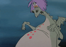 Archimedes and Arthur then go flying. Arthur, of course, appears to be a “natural” (symbolic of his future elevated status and success, no doubt). The appearance of the hawk, like Arthur’s earlier mention of the griffin and giant, is a clear reference back to White’s novel. This ultimately leads to Arthur’s introduction to “Mad” Madame Mim. When Merlin shows up to rescue Arthur, Merlin and Mim enter into a “wizard’s dual”: http://www.cornel1801.com/disney/Sword-Stone-1963/film7.html.